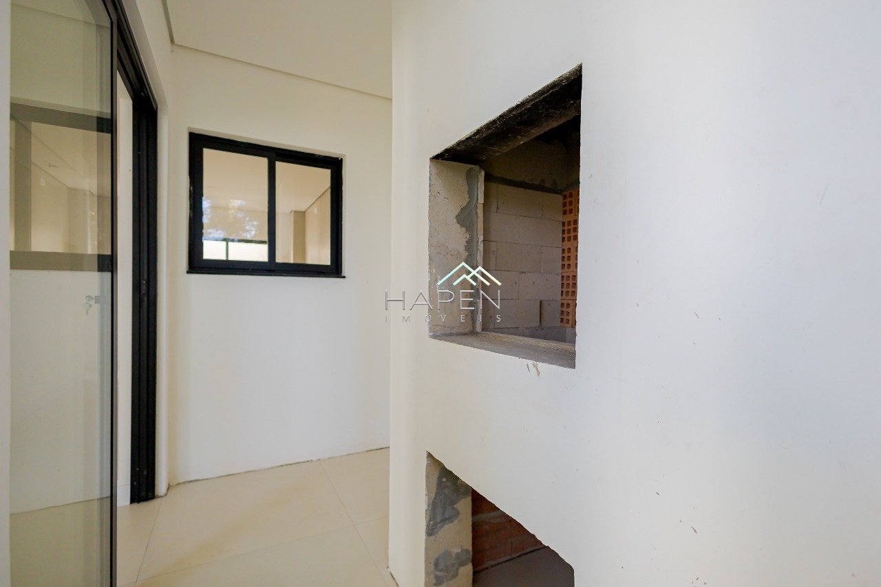 TÉRREO: Ambientes integrados, com ampla cozinha e pontos de espera para ilha. Lavabo, área de serviço separada da cozinha e com área externa descoberta. Churrasqueira externa à carvão, com acesso ao jardim privativo. A escada que dá acesso aos pisos superiores, possui uma ampla janela, envolvendo todos os pavimentos, garantindo iluminação e ventilação natural. 2 vagas de garagem cobertas com pergolado, podendo ter mais vagas dependendo da configuração do layout externo.
